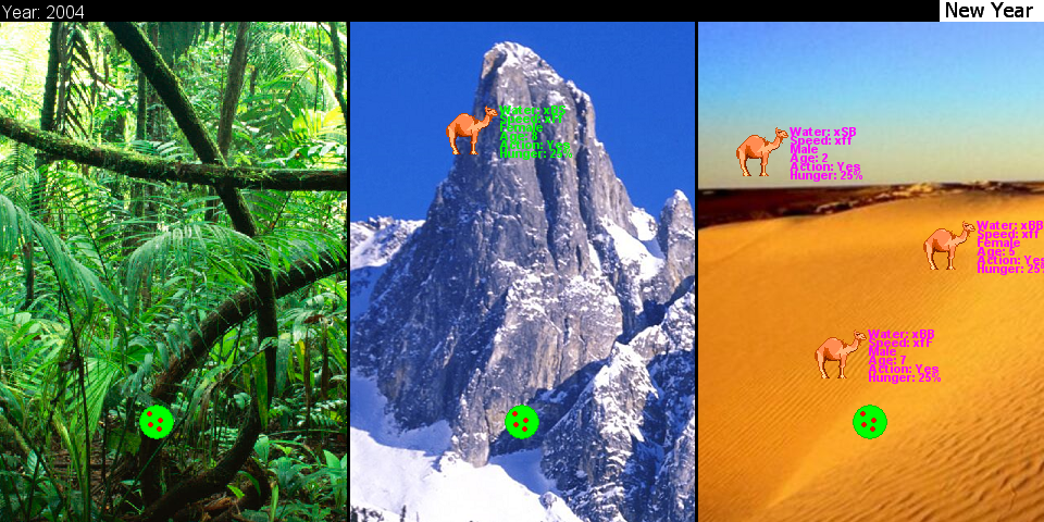 Camels is an game created for a science class, which simulates evolution on a small population of camels.