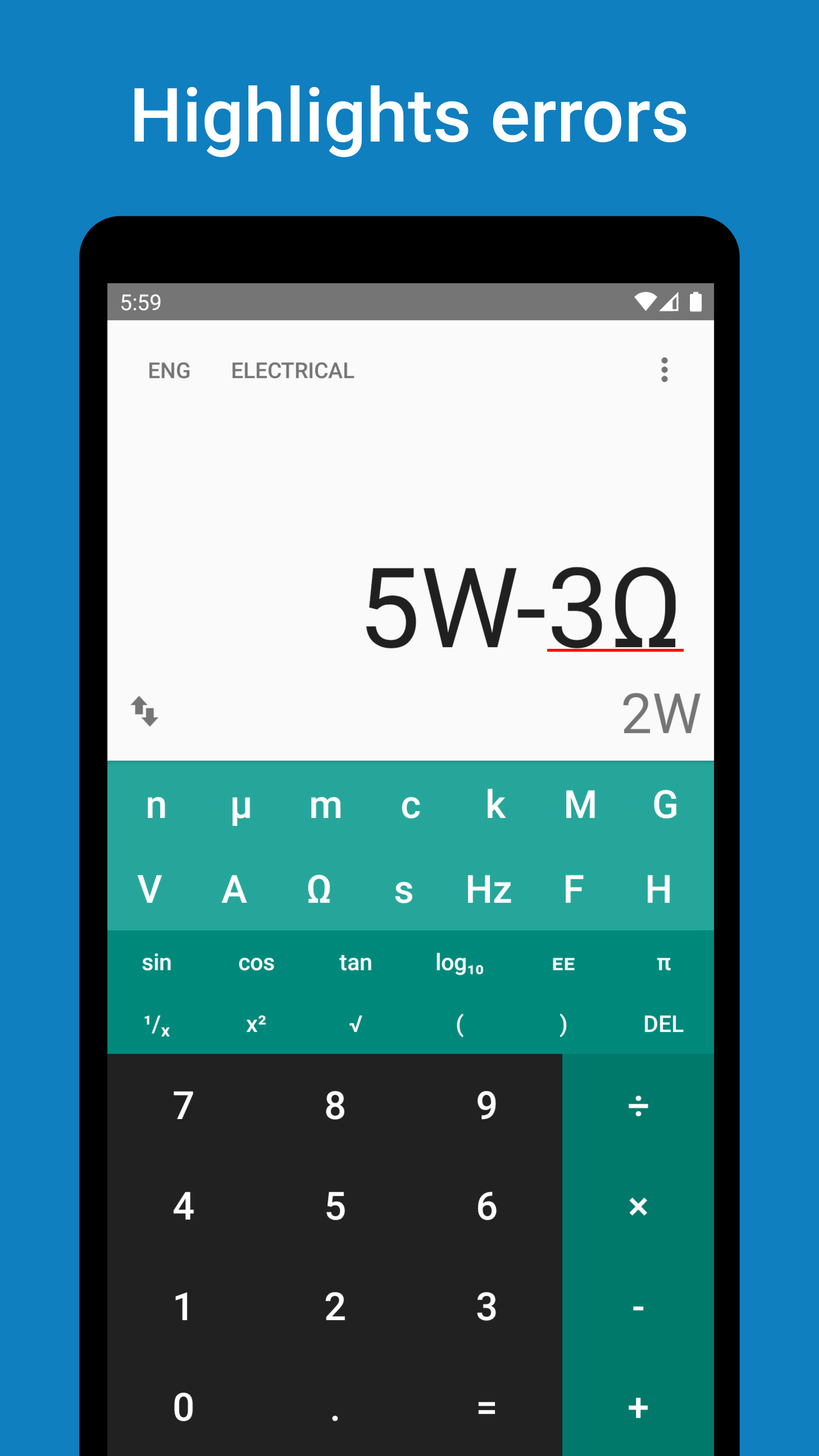 Digits is an android app designed to make engineering and scientific calculations easier. It was born out of my own need to perform calculations with units of different magnitude. Users may upgrade to a “pro” mode if they would like access to a larger variety of skins. Parsing is done over a unicode string, so the user may copy/paste expressions if they wish.