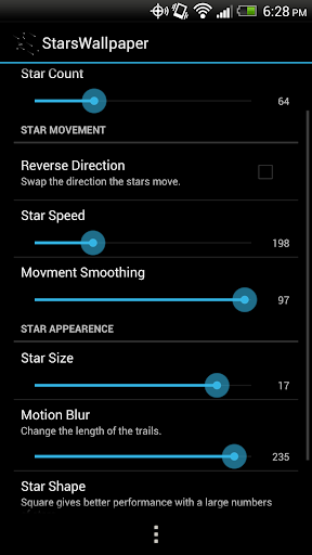 Stars Published: April 10, 2014 Updated: January 30, 2021 Stars is an android live wallpaper that uses parallax to create depth among a bunch of small stars. The app was created as an attempt to make money on the Android app store. It uses the phone’s gyro to create the parallax effect. Previous Next